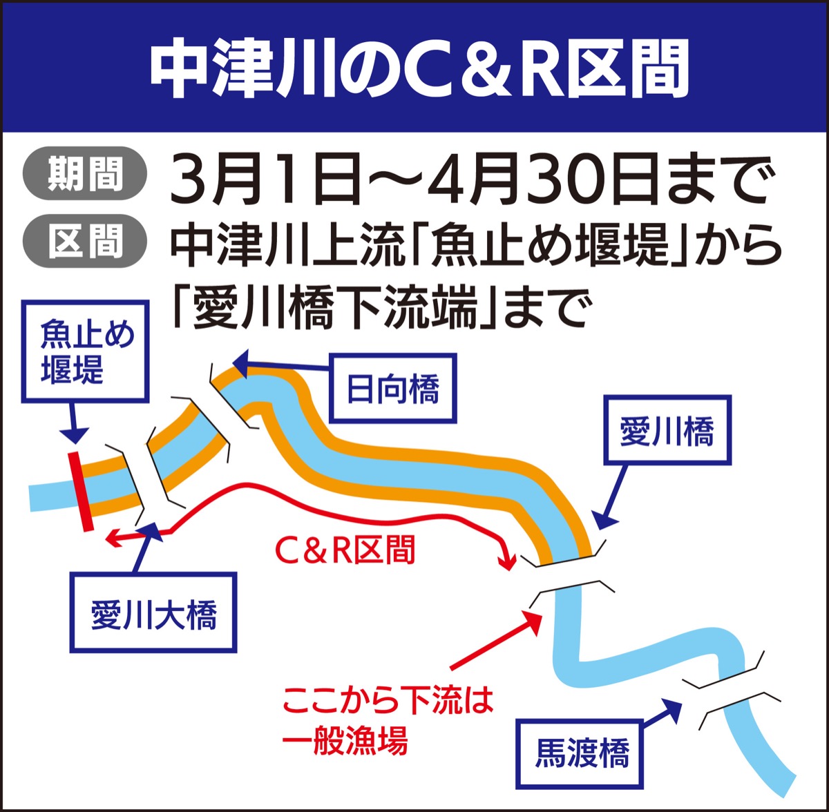 中津川でリリース区間設定
