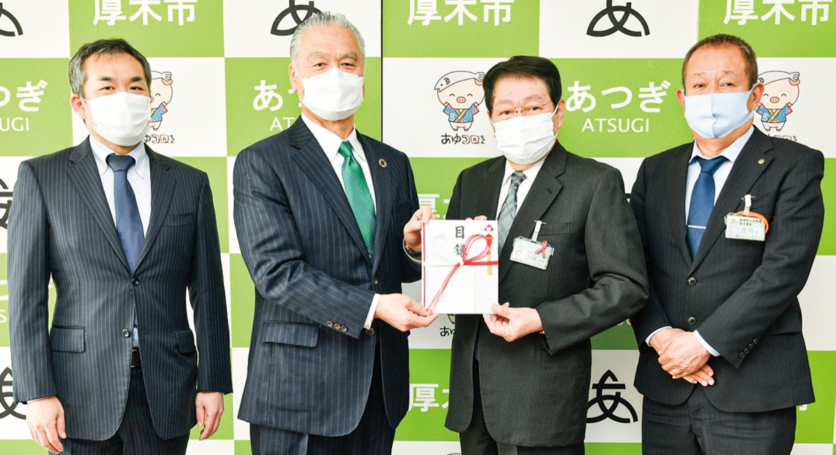 ガラスリソーシング(株)(赤坂修代表取締役社長・本社千葉県銚子市)が2月8日、厚木市の「あつぎ元気応援寄附金」に100万円を寄付した。