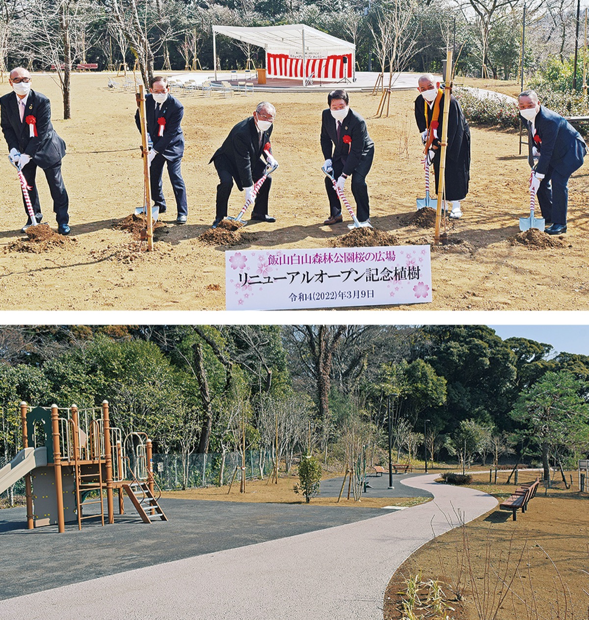 飯山白山森林公園(厚木市)の桜の広場が3月9日、リニューアルオープンした。同日には、セレモニーが行われ、小林常良市長らによる記念植樹が行われた。リニューアルは、サクラの季節だけでなく、1年を通してハイカーや長谷寺への参拝客などの観光客でにぎわう新たな観光拠点とすることがねらい。