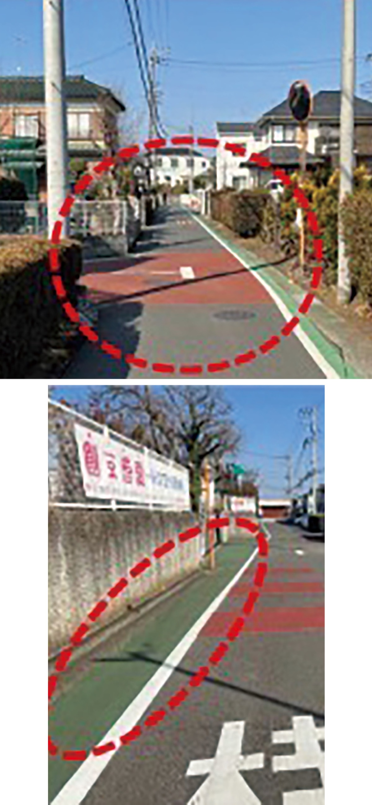 その上で、交差点内のカラー化、路側グリーン化、横断防止柵・ガードレールの設置、街路灯の設置を行う。これにより、その場所が通学路であることを往来する車や他の歩行者・自転車等に注意喚起し、安全確保を図る。担当の市道路維持課によると、以前対策を施した箇所でも、経年劣化等している場合があるといい、その場合には、再度対策を講じる。