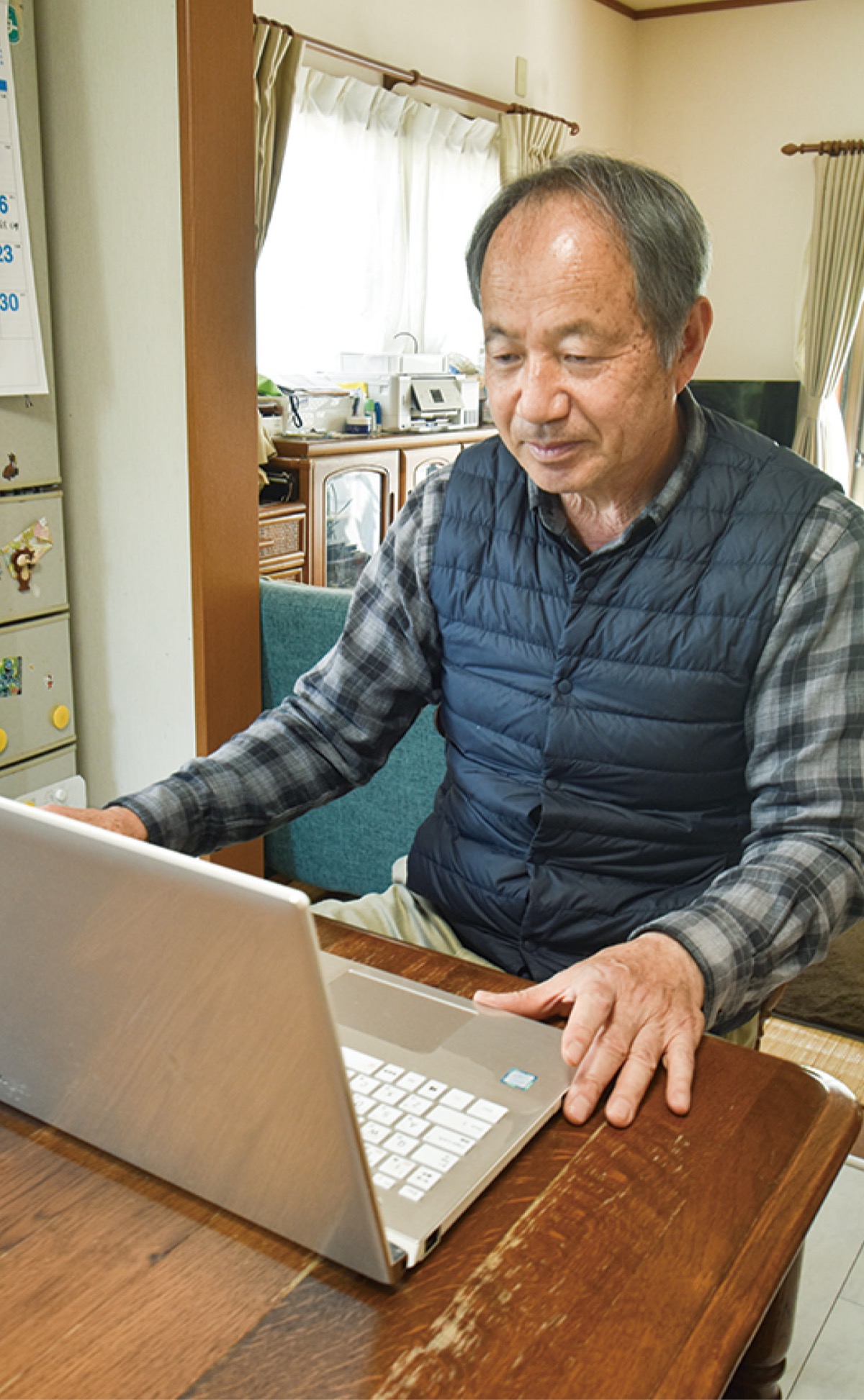 「自治会に加入してほしい、そのためには知ってもらわないと」。仕事でパソコンに慣れていたこともあって編集を担ってきた西村さんだったが、交通事故で負傷して会長を退いた。足は動かしにくくなったが、バイクに乗って取材に動く。