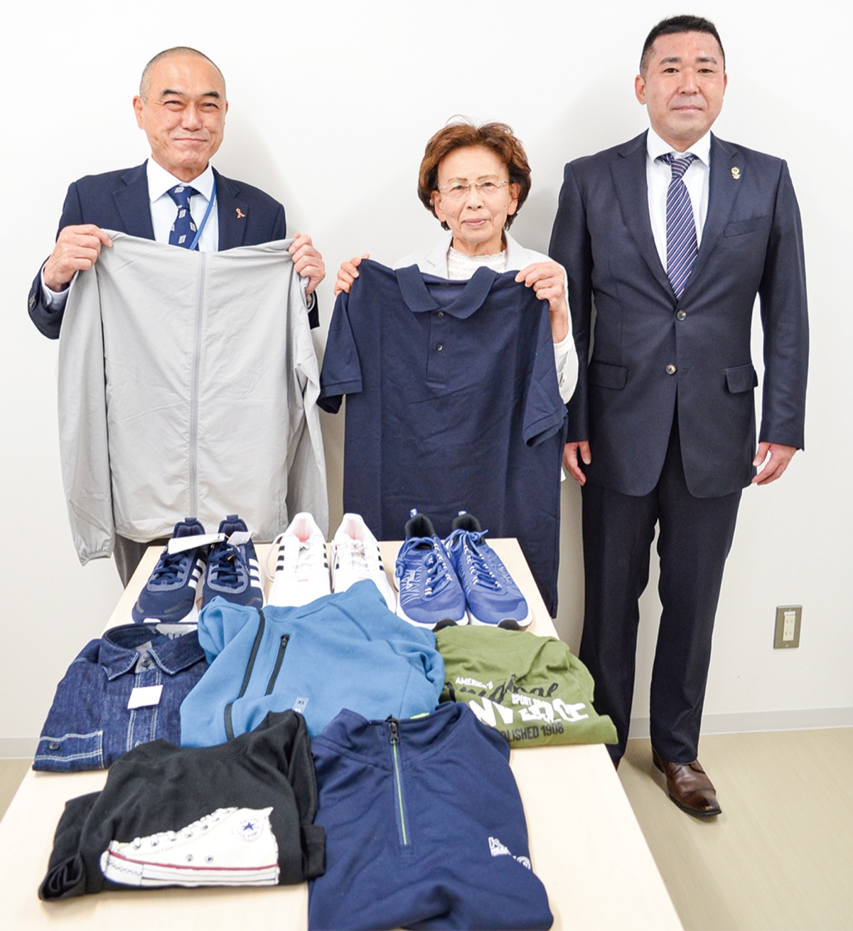 今回寄贈したのは、大き目の運動靴3足と洋服7着。「児相には18歳までの子どもがいるため、大きいサイズの服や靴が足りないと伺っていた。必要としているものを贈りたかった」と平本会長は話す。