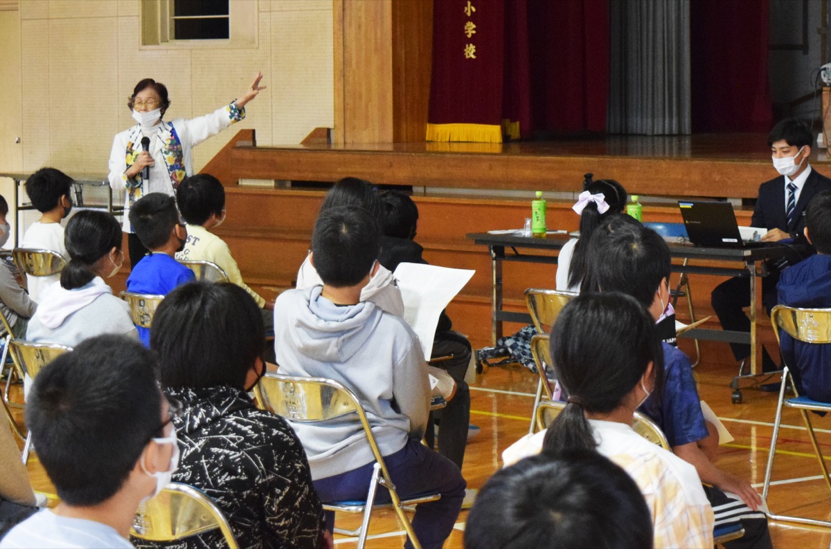 当日は、同小の6年生が上原さんの講話に耳を傾けた。「戦争にならないために、普段の生活ではどうすれば良いと思いますか」という上原さんの問いかけに児童の一人は、「色んな人を気遣い、差別しないことが大切だと思う」と話した。