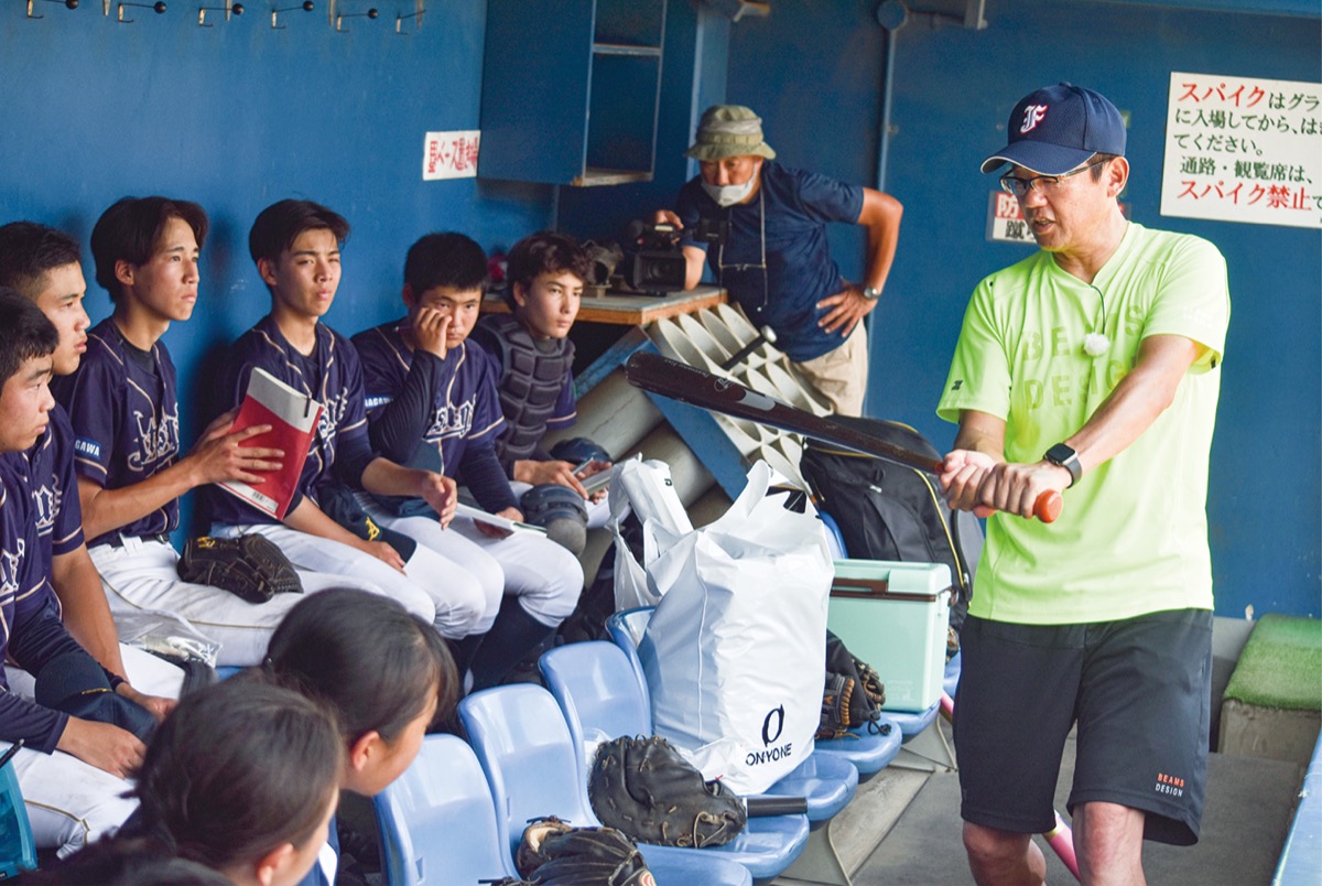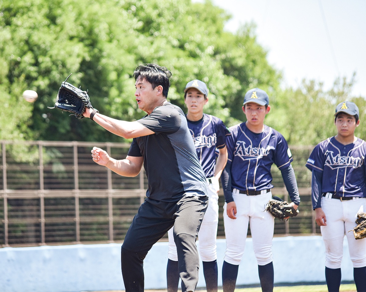 古田さんは厚木ヤングの部員に攻守のポイントなどを教え、休憩中も人生観を交えて語りかけた。熱心にメモを取る部員の姿も。元メジャー選手の五十嵐さんは部員の間に入って投げ、手本を見せていた。井原尋大監督(34)は「レジェンドたちの指導はめったにない機会。感無量です」と話していた。