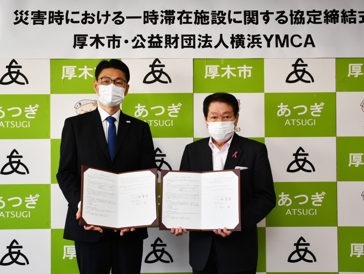 厚木市が7月22日に、本厚木駅近くにある厚木YMCA(中町)と 「災害時における一時滞在施設に関する協定」を結んだ。厚木YMCAが協定を結んだことで、民間施設では2カ所目となった。利用対象の部屋は厚木YMCAの体育室と多目的室の約400平方メートルで、約100人が滞在できる。