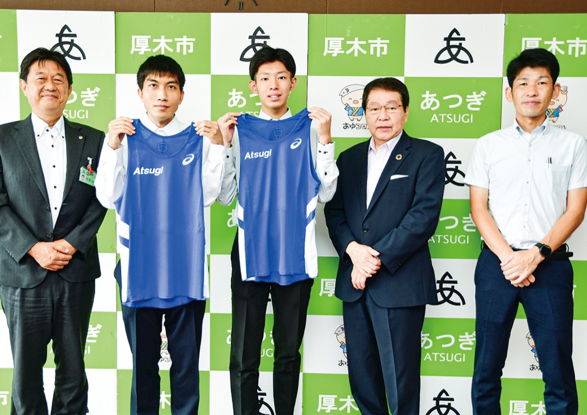 厚木市の友好都市である秋田県横手市が主催する「第7回よこてシティハーフマラソン」に厚木市選手団3人を派遣することをうけ8月30日、選手団が小林常良厚木市長を表敬訪問した。