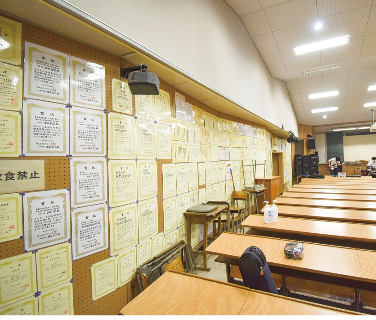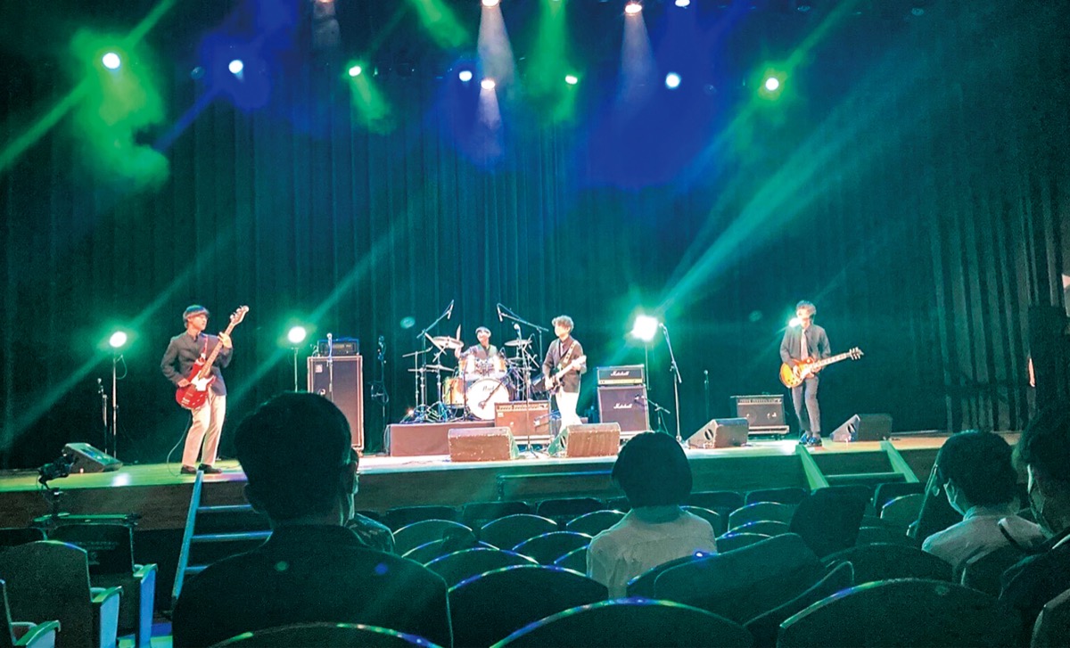 練習場所の視聴覚室ではバンドが代わるがわる演奏し、切磋琢磨の音が止む事がない。マスクをつけたまま、全力で歌う。息の合った4人の生演奏は腹に響き、何かを体に打ち込まれるよう。