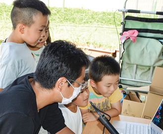 12日のワークショップは顕微鏡で茎の断面を観察した。高橋さんはパソコンに映し出された球状のかたまりをさし「これが細胞です。みんなの身体も細胞でできているんですよ」と解説すると子どもたちは、腕や顔を確かめるように触っていた。その後も、目には見えないミクロの画像に興味津々の様子でしばらく画面から離れなかった。高橋さんは「今は理解できなくても記憶に残りいつか思い出してくれれば」と話した。大塚園長は「図鑑を持ち出して庭にある雑草を調べる光景も見られました。観察力が高まったと思う」と話した。