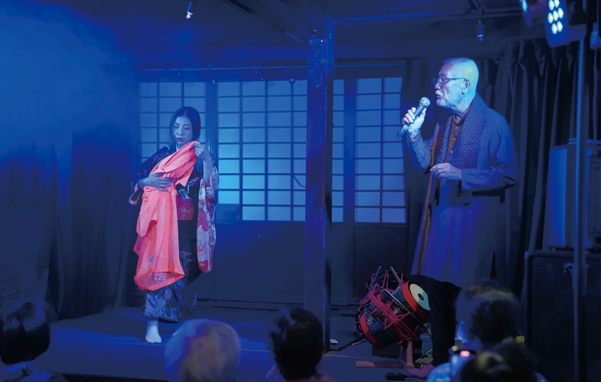 演芸場は文房具店「たまのや」の店内にあり、市川さんは店長という横顔と、伝統芸能「かっぽれ」などを披露する芸能の顔もある。公演はのべ50席が早々と満席となった。スモークや照明が生む幻想的な雰囲気で、市川さんは洋楽の名曲「ユーレイズミーアップ」を披露。衣裳や扇を手に感情にじむ舞いを見せた垣澤瑞貴さんは「とても気持ちがのり、良い世界観になりました」と語っていた。