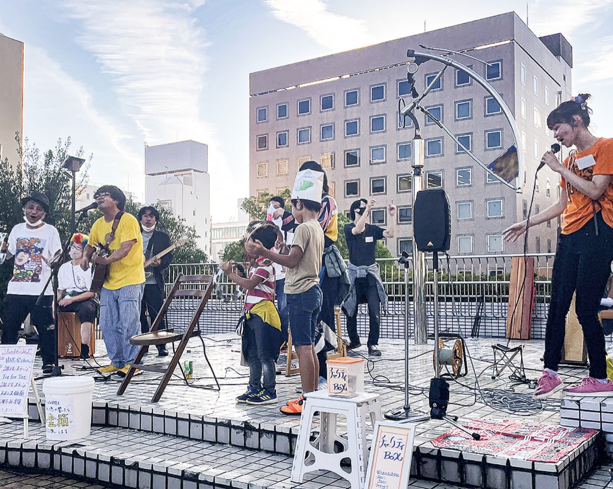 また最終日のステージイベントでは、トリに市内在住のシンガーソングライター・上野友輝さんが登場。最後には自身が作詞作曲をした、ごちゃまぜフェスのテーマソングを参加者と一緒にステージで披露した。
