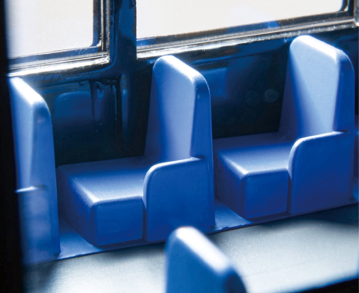 同社ではこのシリーズを通じて各地のバスを商品化している。この車両は鮮やかなボディカラーが特長。黒が基調ということもあり、ロゴ部分の発色にこだわったという。車内も一般的な路線バスと異なっているため、一部の部品を新たに製作した。