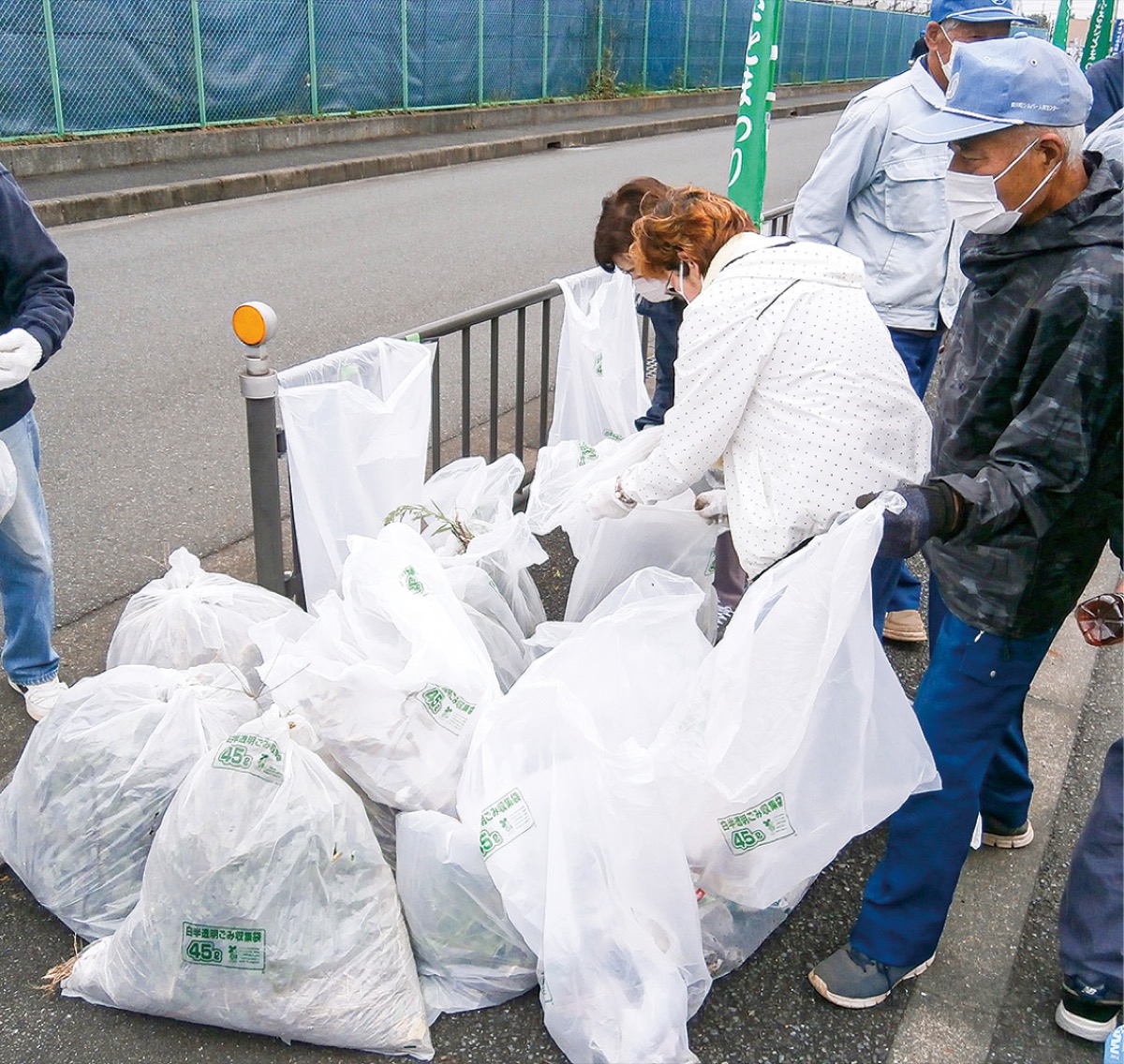 この日は会員ら60人が参加した。23日の「愛川町ふるさとまつり」には町内外から多くの来場者が集まる。「綺麗なイベント会場で楽しんでもらおう」と会員はトングとゴミ袋を手にし、町役場やバスセンター周辺を周りながら落ちている空き缶やペットボトル、枯草などを回収した。会員の1人は「空き缶やペットボトルは少なかった。美化意識が高まってきていると思う」と話した。