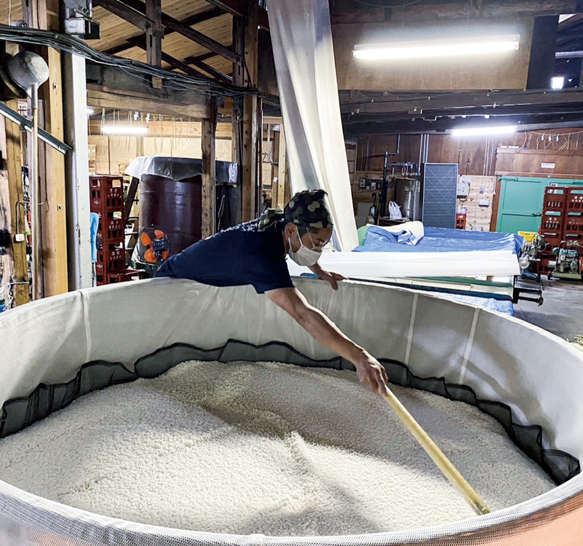 文政年間から190年以上続く同蔵では、丹沢の伏流水を仕込水に使い清酒「残草蓬莱」を醸している。酒造りに欠かせない米は、山田錦や出羽燦々など全国から7種類40トン以上が届く。今年は、米産地での気候は比較的安定していたこともあり「品質も良く、麹もしっかりしているので良い出来になりそう」と8代目蔵元の大矢俊介さんは満足そうな表情を見せた。