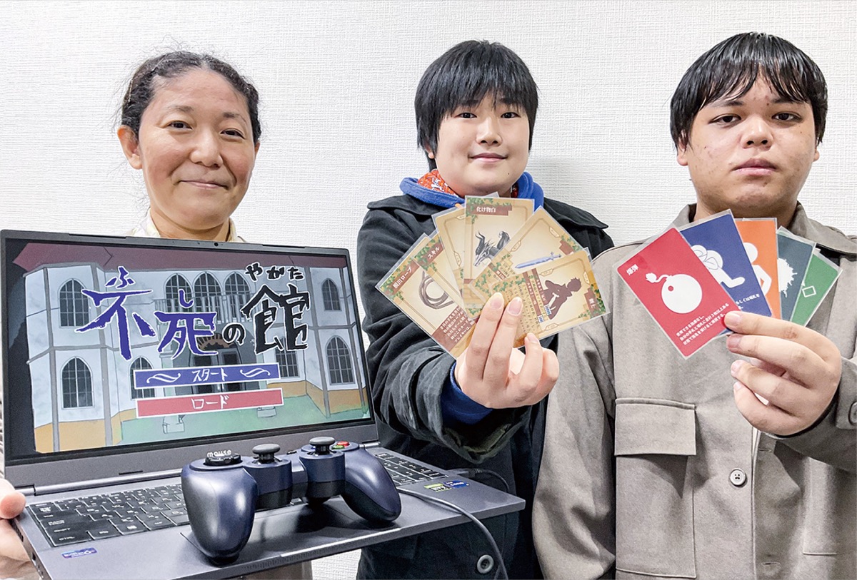 高木亜有子准教授は「共創がテーマで、様々な意見を交わしながら何かを作る事、コミュニケーションの大切さを実感してもらえたのでは」と話す。制作に携わった清水隆一さん(2年)は、「ゲームショウで実際にゲームをしてもらった。楽しんでもらえて満足です」、3DのCGなどを担当した小牧竜馬さん(同)は「ゲームの舞台がじわじわと完成していくのが楽しかった」と語った。