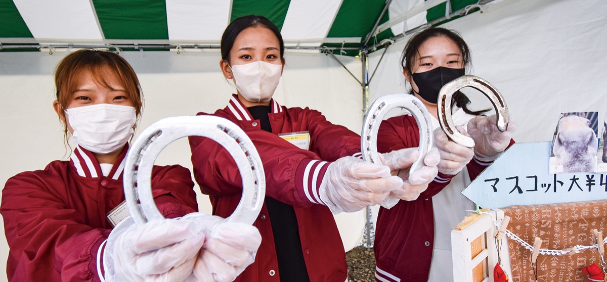 第23回となる今回のキャッチコピーは「鋤き起こせ、農の学びと喜び」。会場では体験企画やステージ企画、文化学術展などが賑わい、外の模擬店ではハチミツやベーコン、野菜や植物苗などが販売され、行列ができる店もあった。馬術部は幸運を招くとも言われる蹄鉄(ひづめに装着する金具)を販売。初日だけで70個が売れた。