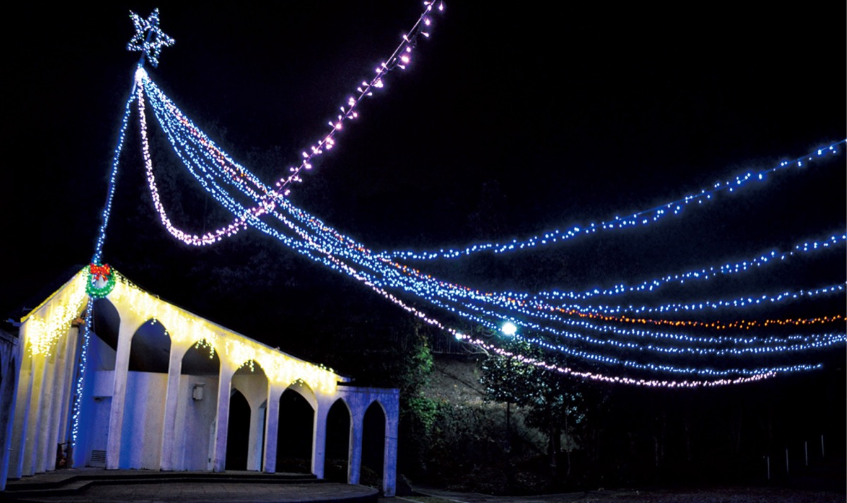 厚木市森の里にある若宮公園の音楽堂が12月24日(土)までクリスマスイルミネーションを点灯中。