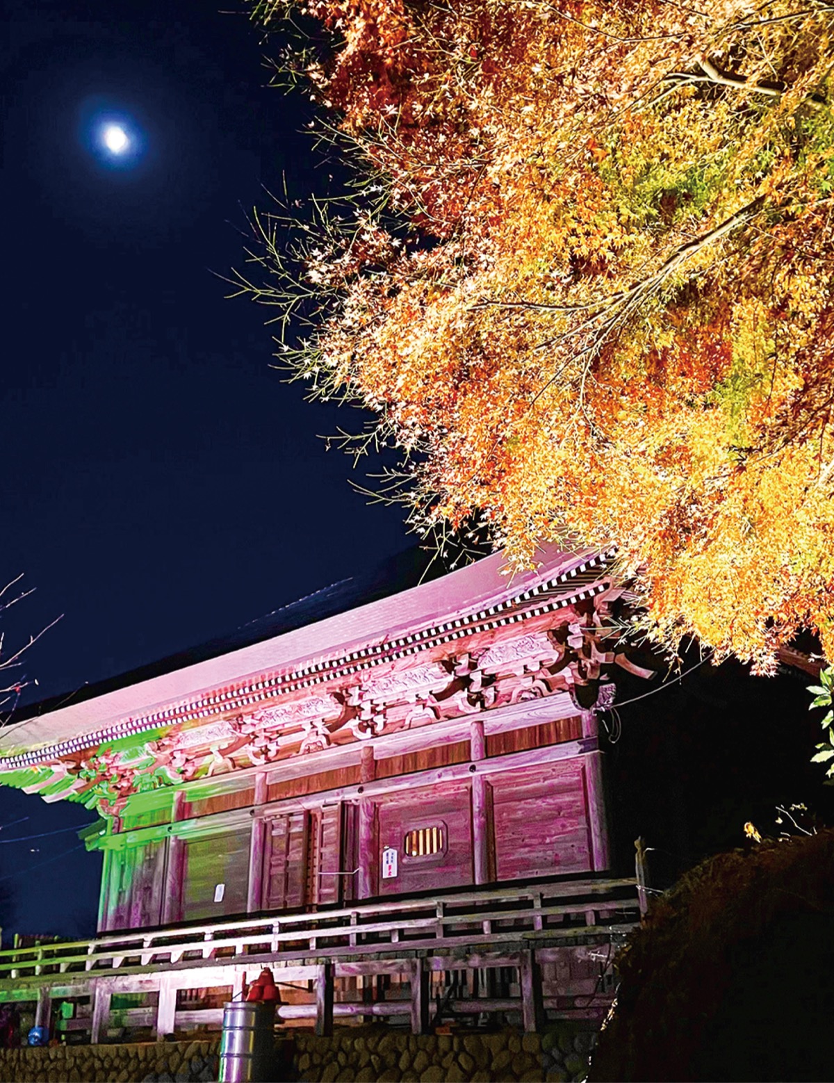 厚木市飯山の飯山観音長谷寺と飯山白山森林公園で12月3日、飯山ライトアップ&秋のキャンペーンが行われた。
