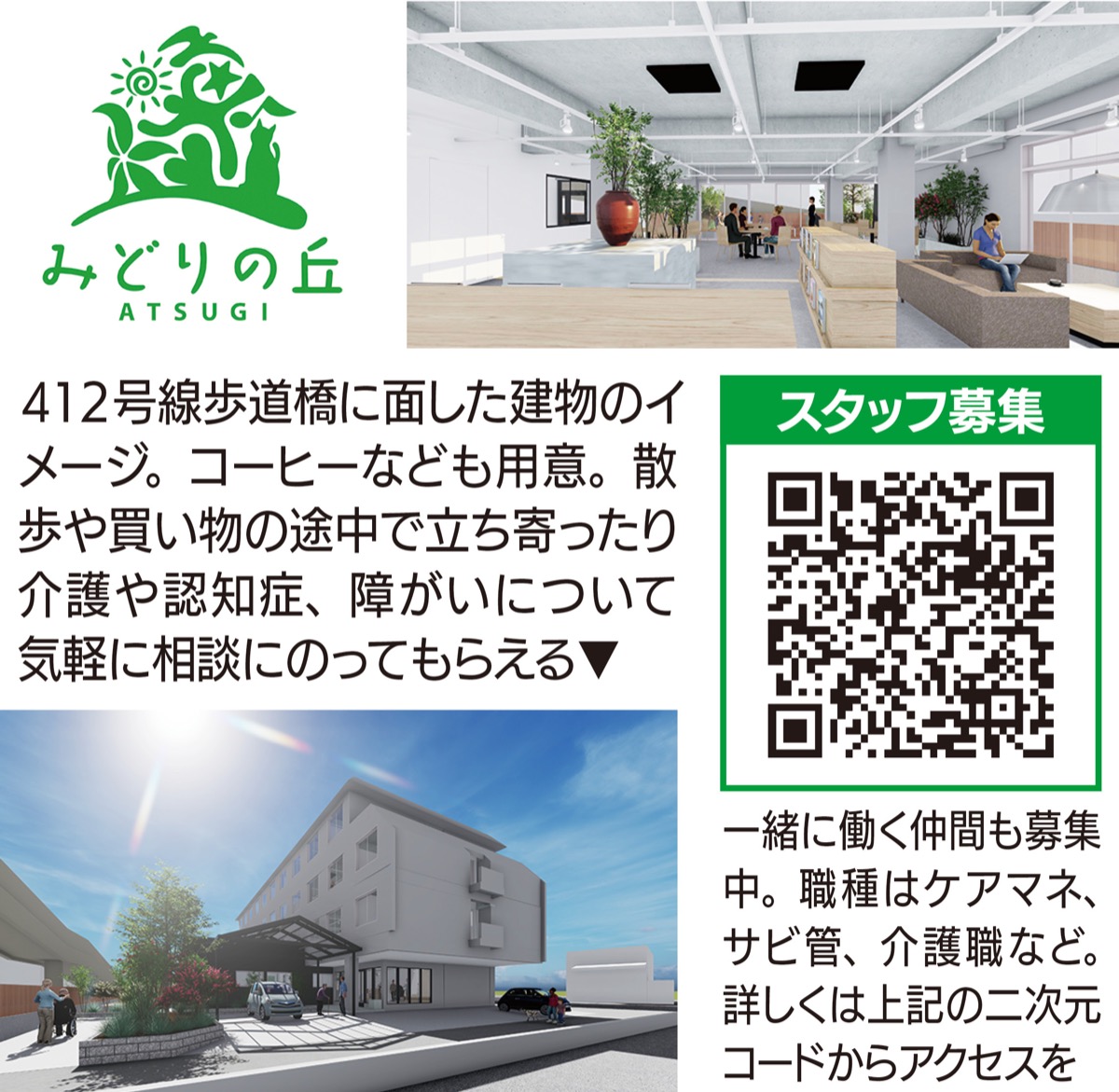 412号線沿い(戸室)で、新しい福祉複合施設「みどりの丘」の準備が進んでいる。3・4階には4月に認知症グループホームが開所。1階は誰でも気軽にコーヒーやお茶を楽しめるカフェを常設する予定で、認知症(若年性含む)や障がいについても気軽に語りあい、相談できる。就労継続支援事業所や居宅介護支援事業所も入る構想があり、歩道橋沿いで立ち寄りやすい。地域に開かれたスペースとして注目を集めそうだ。