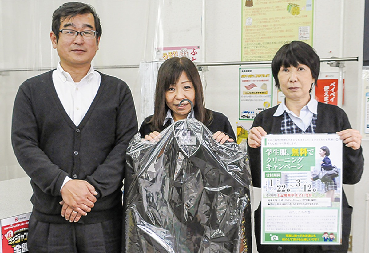 新型コロナによる学校行事の中止や縮小などで、「思い出作りが制限されている子どもたちを笑顔にしたい」と2年前に始まった学生服無料キャンペーン。厚木市内のクリーニング2店舗が今年も実施している。
