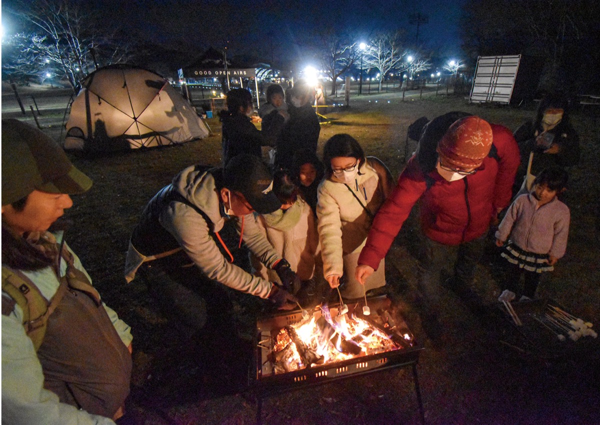 会場にはストーブ付きの大型テントなどを展示。ランタンがまばゆい光を放ち、こんがり焼けたマシュマロを口に入れた来場者は「中がトロトロ」「プリンみたい」と絶賛していた。イベントでは宿泊はできなかったものの、山々を望む風景に「ここで泊まれたらいいのに」という声も。