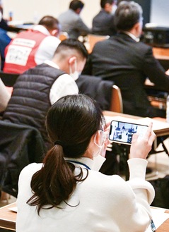 この日は、災害ボランティアセンター運営アプリを開発する社協系ベンチャー事業者が講師を担当。佐賀と静岡の事例を交えながら、電話と紙による従来の運営手法とアプリの活用を比較し、登録や指示などを参加者が模擬体験した。
