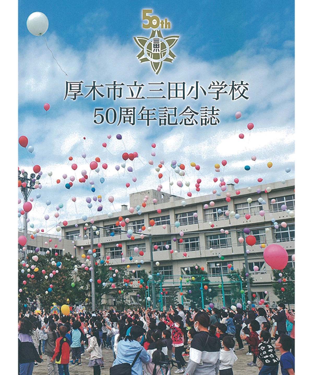 同校50周年記念式典実行委員会では、記念事業のひとつとして記念誌を作成=写真下。学校だけでなく、地域の歴史を振り返る項目や卒業生、地域の人たちからのメッセージなども網羅されている。袖澤良春委員長は「皆様のご支援で50周年のさまざまな思いを綴る記念誌を発行することができた」と話した。
