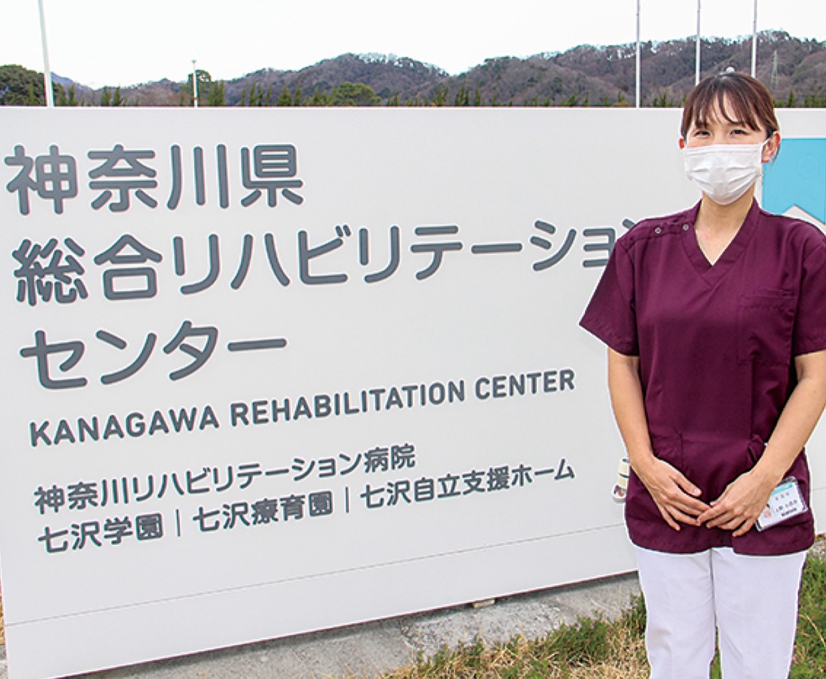 厚木市七沢の神奈川リハビリテーション病院で働く上野小百合さん(43)も、5年前に合同就職説明会を通じて、同院に就職したひとり。「ブランクもあり、最初は不安でした」と入職当時を振り返る。神奈川リハビリテーション病院に決めたのは「イキイキと働いている雰囲気と元気なあいさつ」だった。