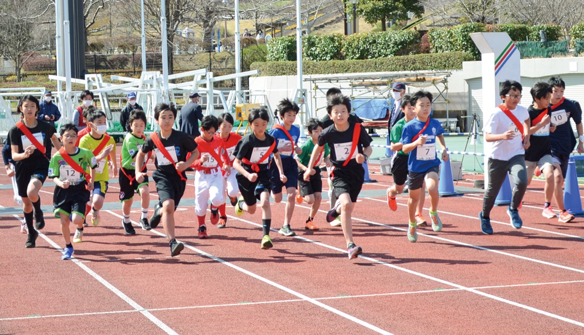 レースは、1・5Kmの部(5・6年生)、1Kmの部(3・4年生)、1Km親子の部(1・2年生と保護者)が順次スタート、競技場内外のコースを走りゴール。最後に4人でたすきをつなぐ駅伝の部(3年生以上)が行われた。各選手にはスタンドなどからチームメートや保護者らの声がかかり、懸命にゴールを目指す姿が見られた。