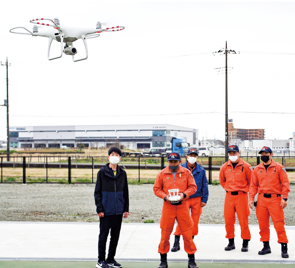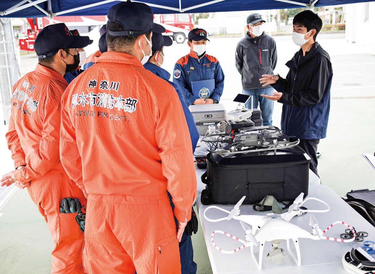 この日は、市消防本部のドローン操縦ライセンスを持つ職員が参加。実際にドローンを飛行させ、同社のプロパイロットの目線でアドバイスを受けた。