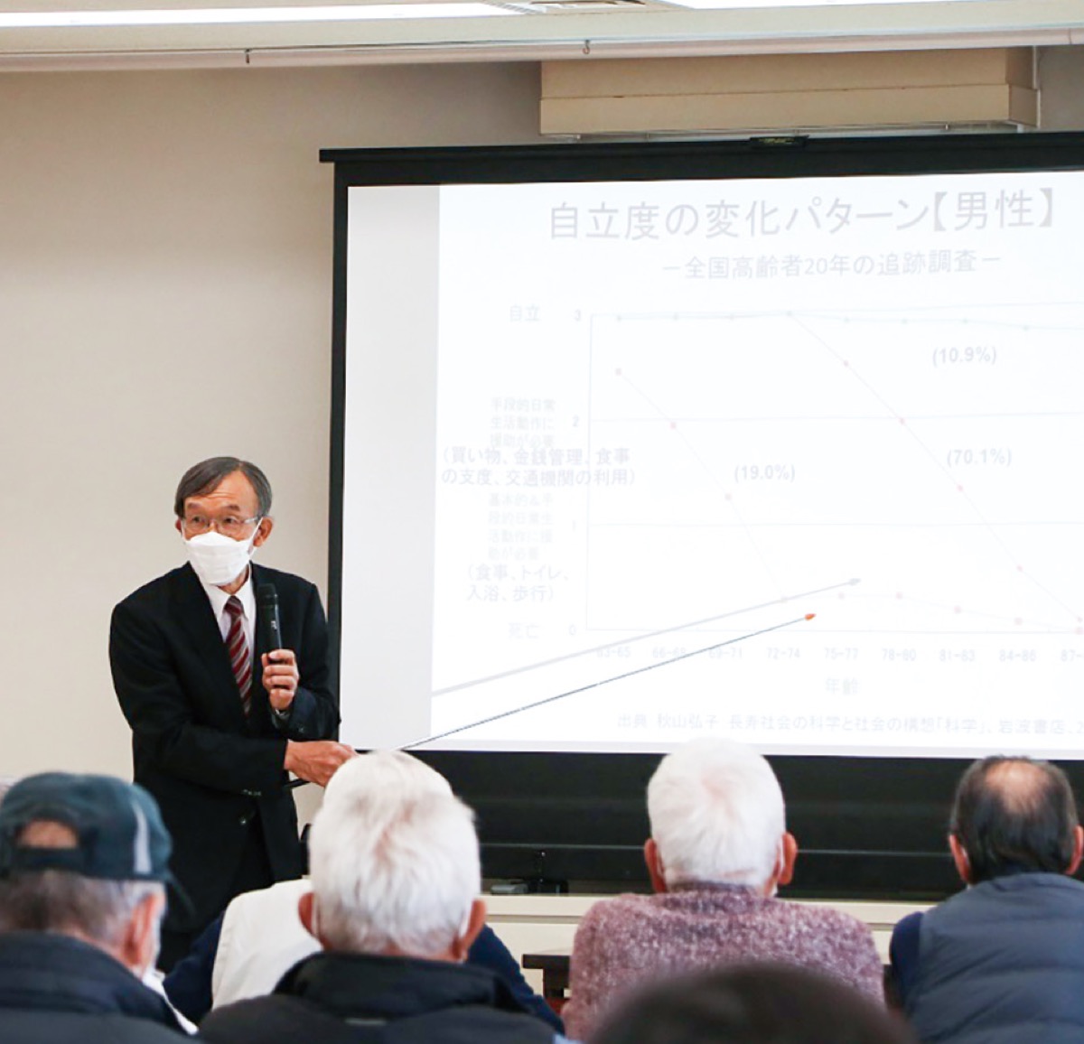 横浜市立大学の小田清一教授が講師として事故事例から注意点を挙げ「加齢による老化や運転技術は個人差があることを認識して」と呼びかけた。参加者はメモを取るなど真剣に聞いていた。