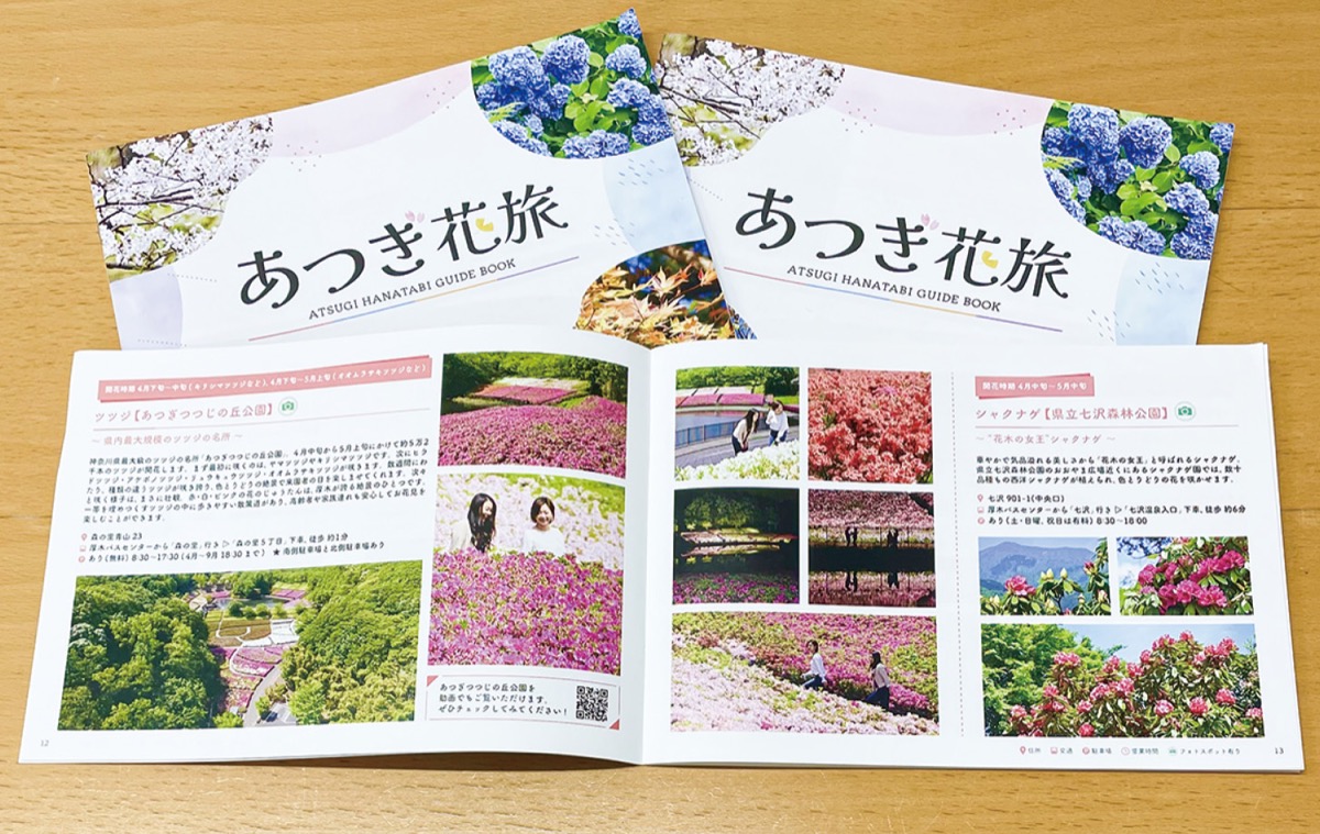 厚木市観光協会が花をテーマにした新ガイドブックあつぎ花旅を発行した。3月下旬から同協会事務局や観光案内所で無料配布されている。