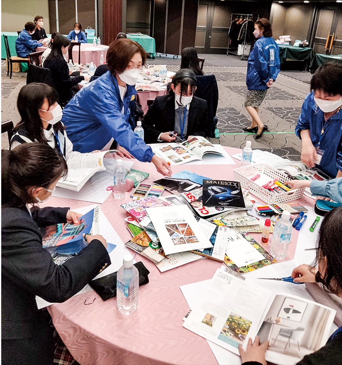 「キャリアを探る」「失敗を成功に変える」など、7つのセッションに丸一日かけて取り組んだ。序盤で会場のテーブルに積まれたのは、会員が持ち寄った旅行雑誌や女性ファッション誌などの数々。自分の夢や未来をテーマにしたコラージュに仕上げるワークショップで、ページを切り抜き、参加者はスイーツの写真や「私らしく」「輝く日常」などのキーワードを組み合わせた。