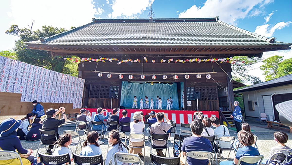 地域に音を響かせた浅間太鼓保存会は、コロナ禍でも月2回の練習を重ねてきた。この日はバチを突き上げるように振りかぶっては打ちこみ、注目を集めた。昔の大祭では複数のお囃子が音の大きさを競ったという。井上要代表は「鳴り物は祭の華。休みが長かったけれど、体にしみこんだ叩き方は忘れません」と笑顔を見せた。