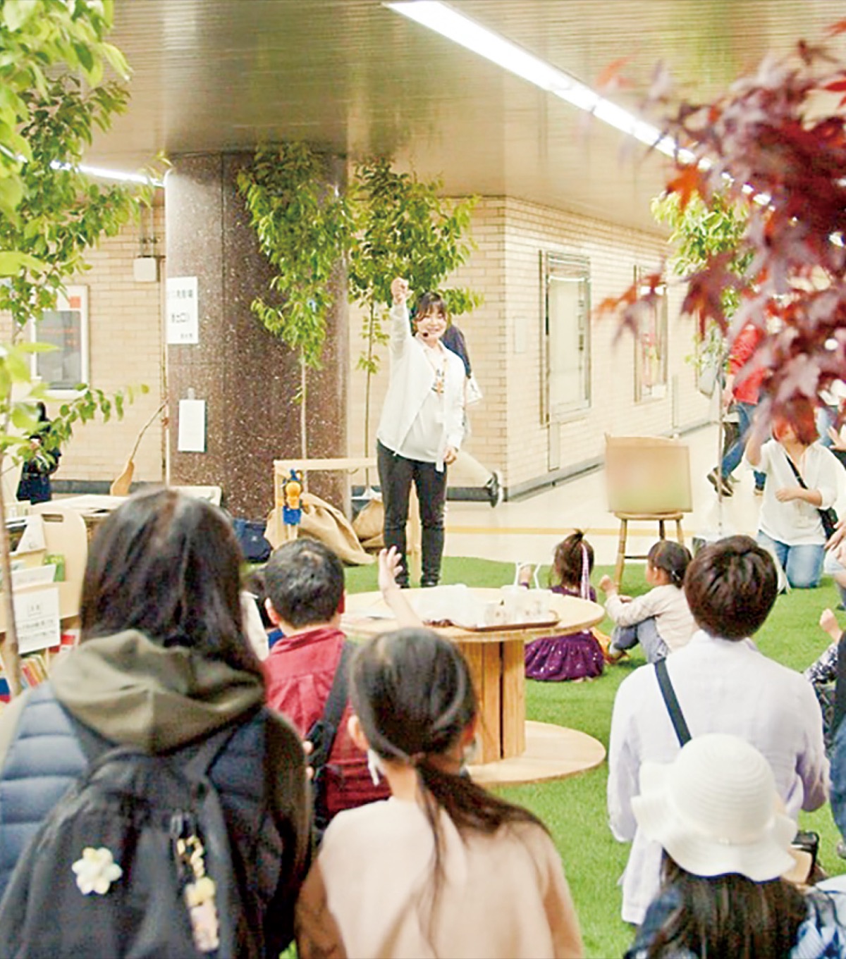 この日会場には、市内妻田南の「ハティスコーヒー」が1日限定のカフェをオープン。地下道の一部にハイテク人工芝を使った芝生空間が広がり、コーヒーを片手にくつろぐ人や「お話しキャラバンぐりぐら」による読み聞かせなどを楽しむ子どもたちが見られた。親子で訪れた女性は「地下道のイメージが変わった」と話していた。