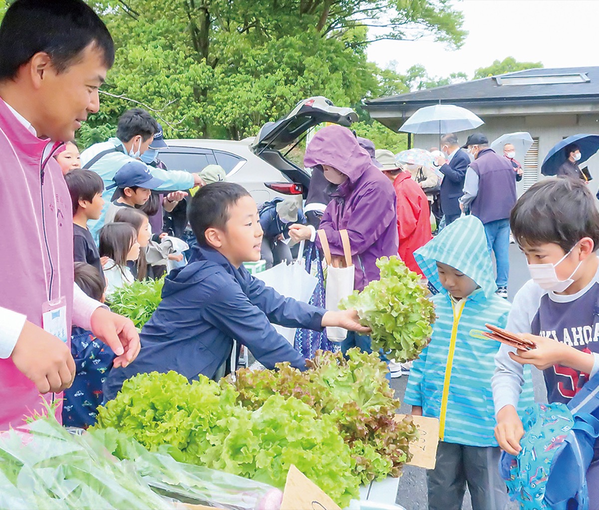 水菜を購入した60代女性は「次も楽しみ」と話し、趣味で家庭菜園を営み今回初出店した浅井央章さんは「顔の見える地域交流の良さを感じた」と笑顔を見せた。