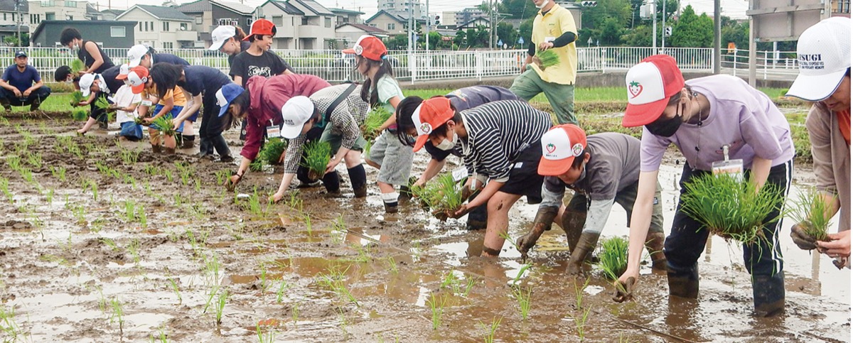 JAあつぎ(大貫盛雄代表理事組合長)は6月10日、通年型食農教育事業「親子夢未Kidsスクール」を開校。厚木市船子の田んぼで田植え体験を行った。