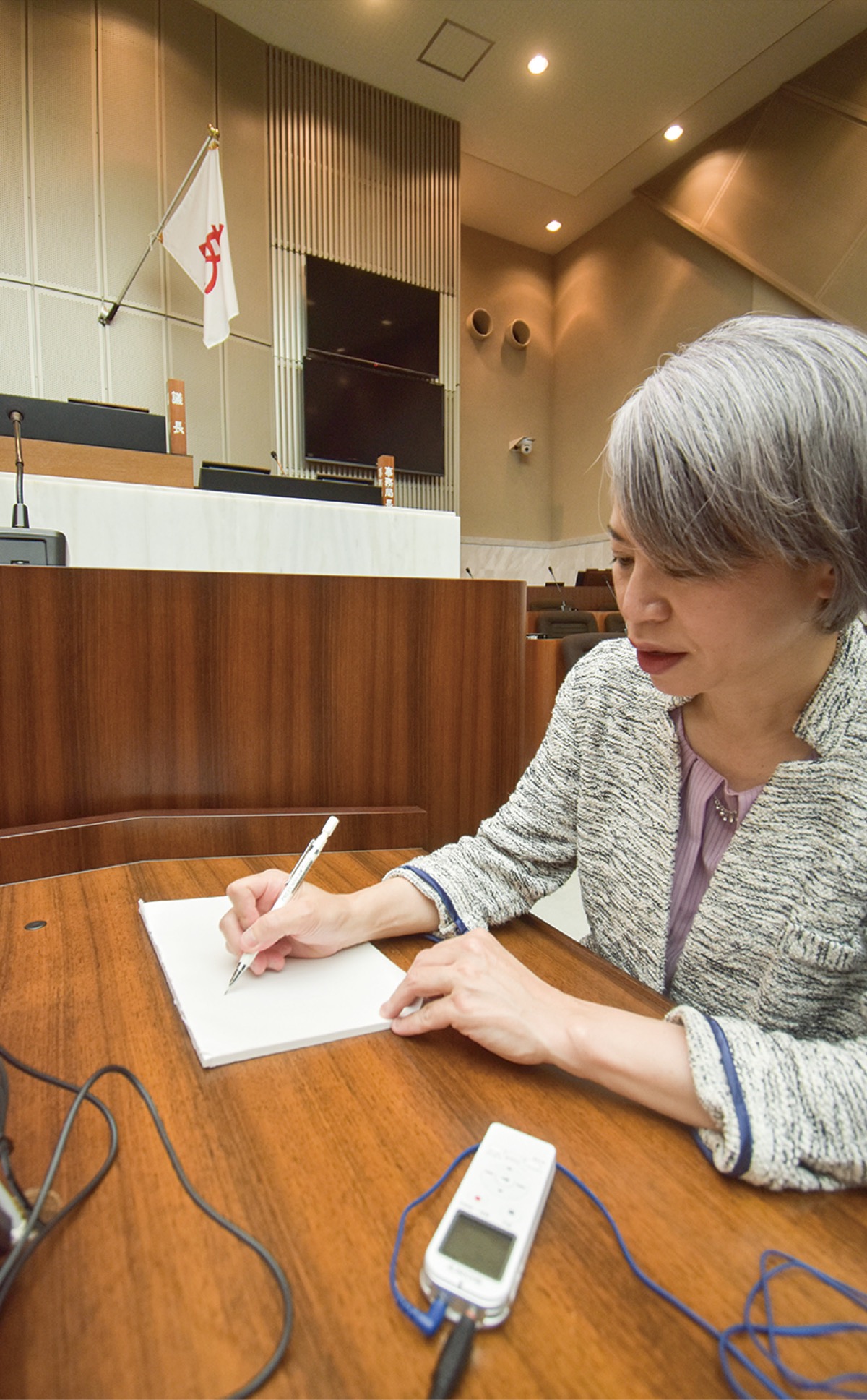 「昔に比べ、議会は早口になっていると思います」。過去の国会映像と比べても、議員の語り口がスピードアップしてきたという。テレビ番組などを眺めていると字遣いには敏感に反応してしまう。普段の速記で、発言者の「てにをは」の使い方などが間違っていた場合、訂正する事もあれば、あえて発言どおりに提出し、事務局に確認してもらうことも。一言一句を大切にしつつ、発言者の意図も汲まねばならない。曖昧な表現が多い日本語。仕事を通じて正確な記録とは何かを、考えさせられるという。