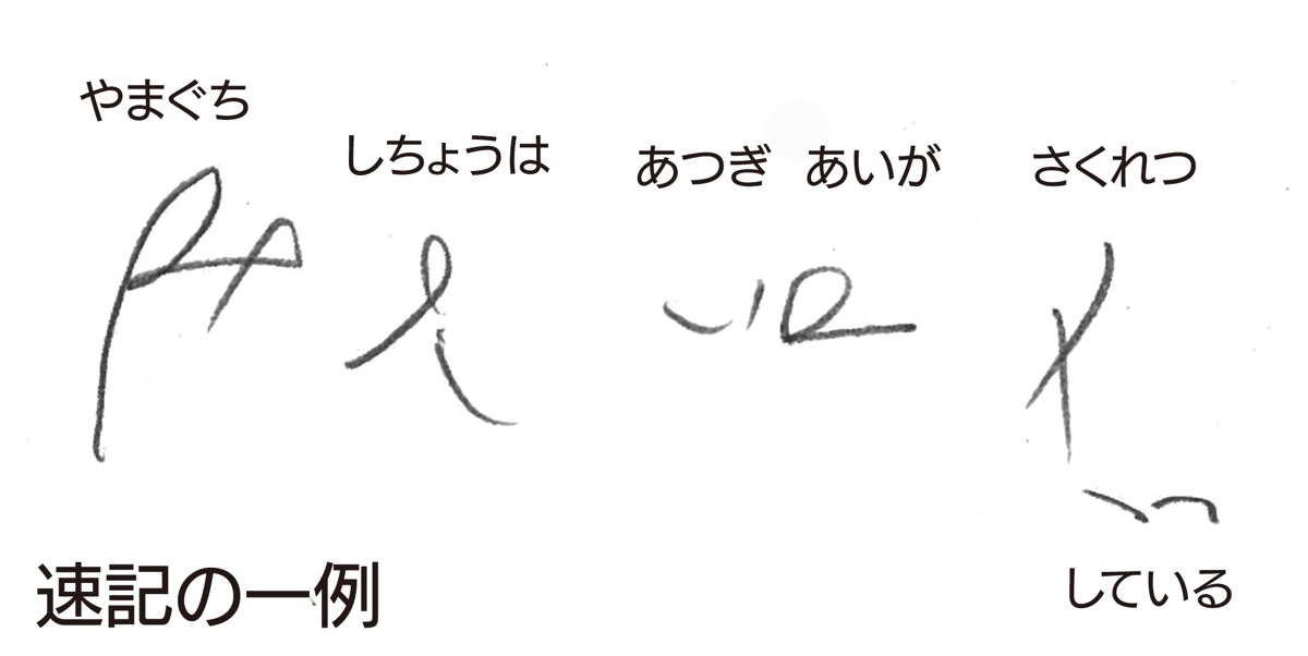 厚木市議会を傍聴すると、演壇前に横向きの速記席が見える。じっと机に向かって作業しているが、その手元は見えない。時に難しい行政用語が飛び交い、早口の発言が飛び出す会議を、どのように記録するのか、議事終了後に書いてもらった。