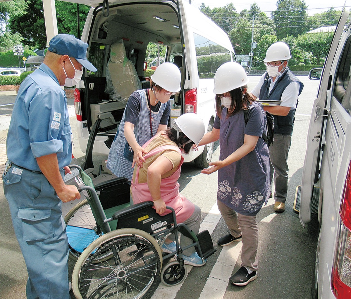 訓練は、関東地方に線状降水帯情報が発表され、町も40ミリの激しい雨が降り続きその後土砂災害警戒情報が発表されたことを想定して行われた。職員は、利用者を用意された車に誘導。各車で人員点呼をおこない、避難に遅れた利用者の有無を確認した。その後、車は避難先の福祉センターに到着。職員は点呼と負傷者等の有無の確認し、責任者に報告を行い訓練を終了した。