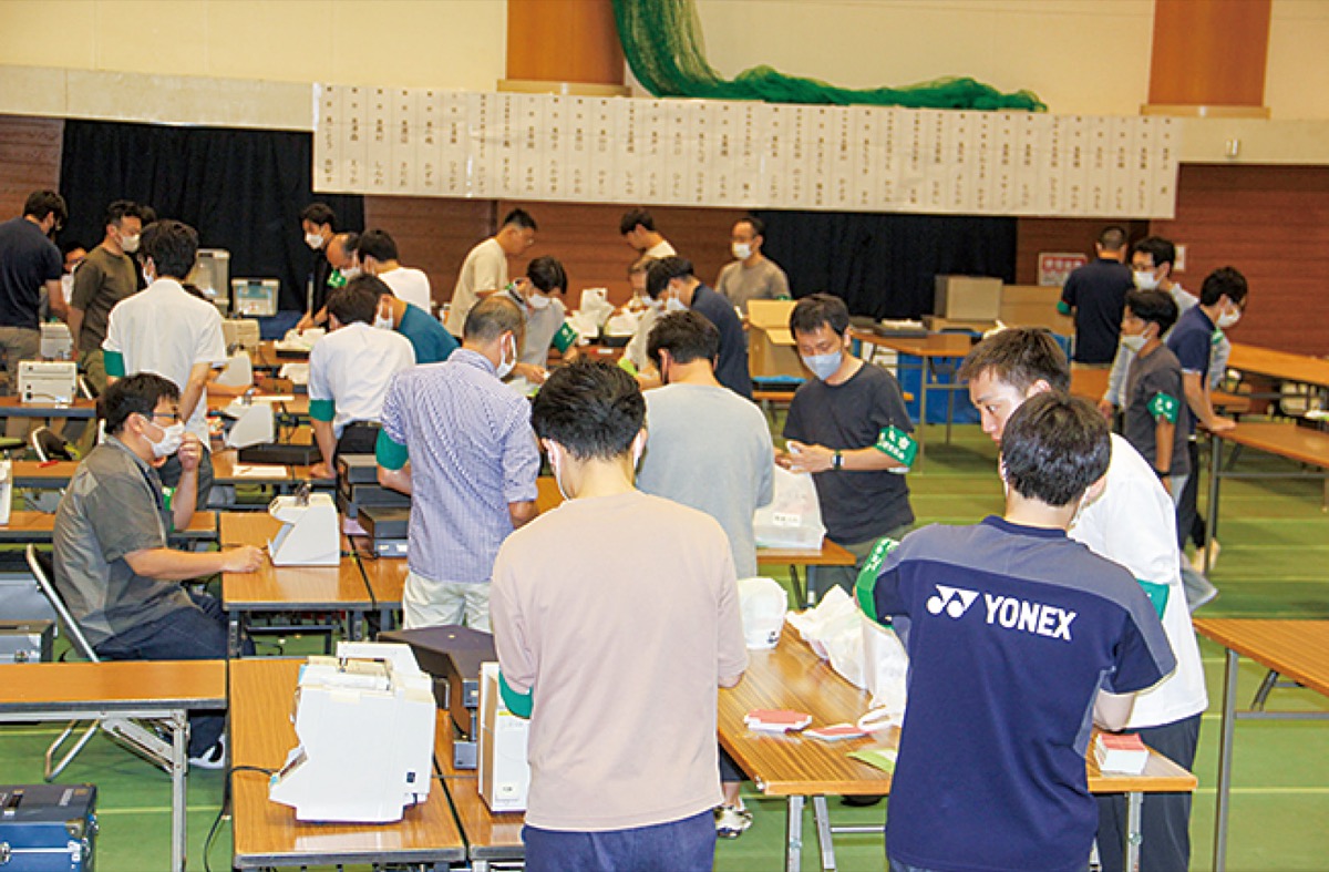 厚木市荻野運動公園体育館で7月9日に即日開票された厚木市議会議員選挙。開票時に投票者数より投票総数が上回る状況が発生し、確認作業が一部やり直しとなり、確定が長引いた。