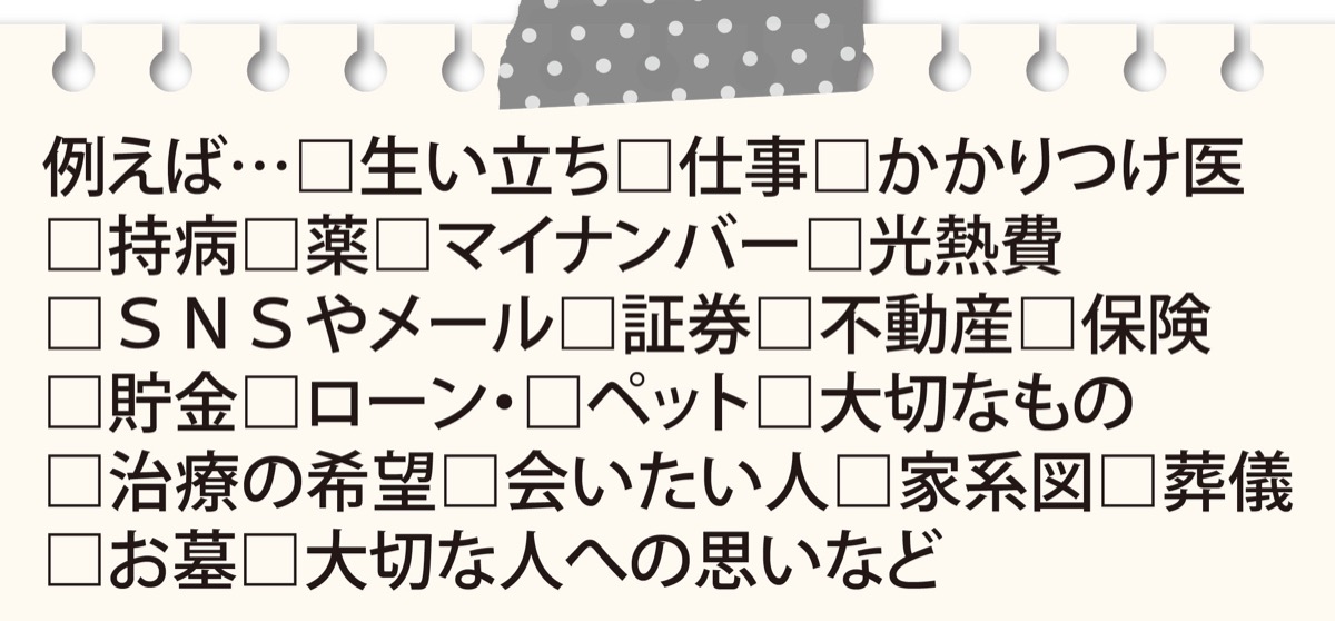 元気なうちにやっておきたいのが、自分を振り返り、これからを思い描く作業だ。厚木市では6月から「じぶんノート」の配布を始めた。自分の経歴や思い出、これからやりたい事、資産、かかりつけ医、希望するケアなどが書き込める。