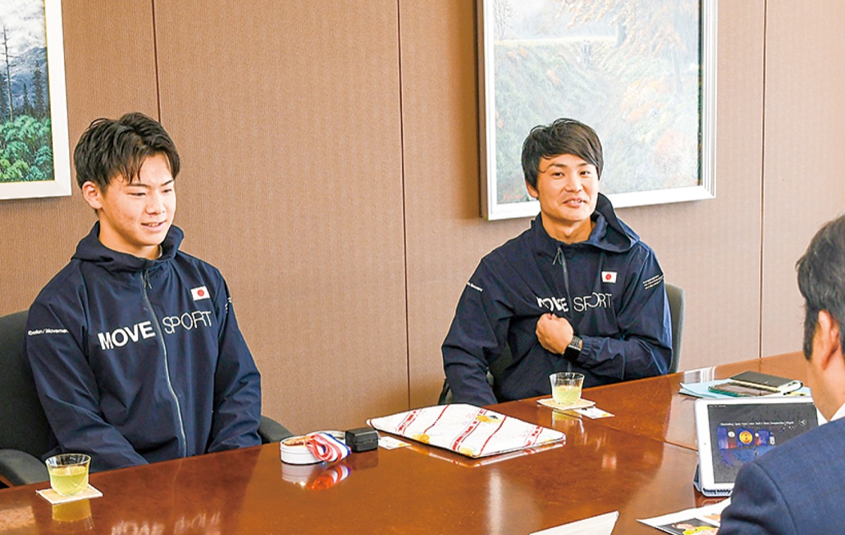 当日は曽根さんの所属するHEROESのコーチで、同じく代表選手でもある杢元良輔さんも出席した。「金メダルを取ることができてうれしい。来年の大会に向けたトライアウトも始まるので、チャレンジャーの気持ちを持ちながら頑張っていきたい」と曽根さん。山口市長は「おめでとうございます。曽根さんの活躍は私たち厚木市民の誇り。これからも応援します」と話した。