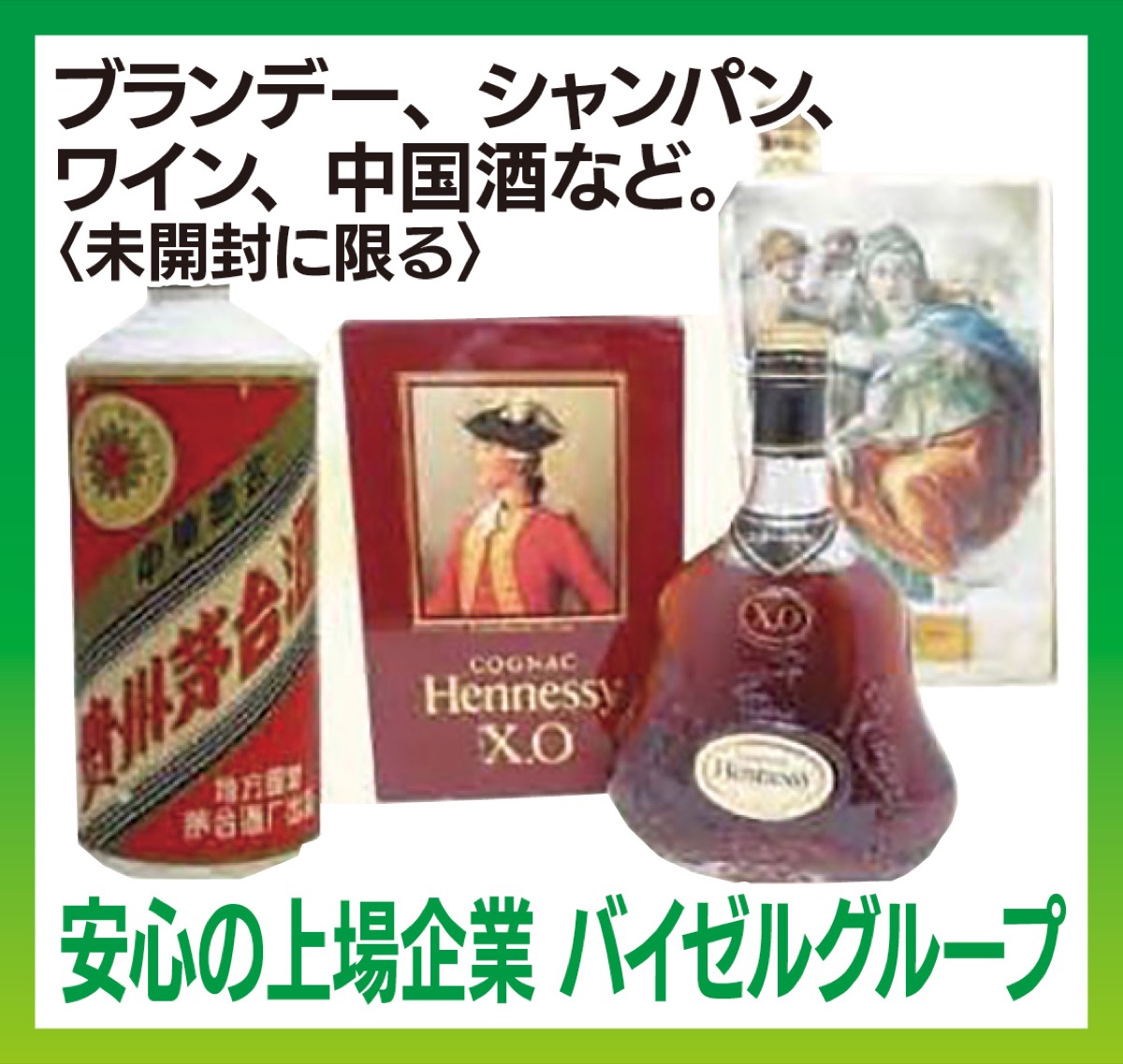 中でもヘネシーレミーマルタンをはじめドンペリカミュ、国産ウイスキー山崎、響などは狙い目だ。「お待ちしています」と店長。