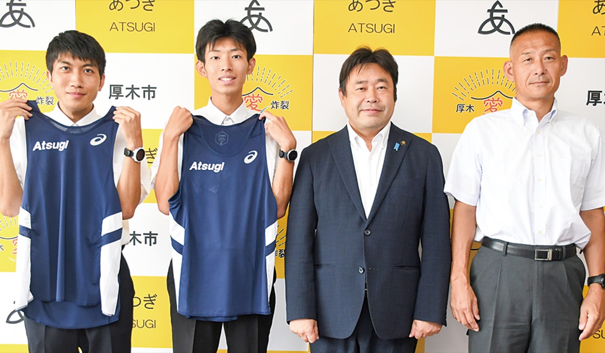 厚木市選手団の派遣は5年ぶり。派遣されるのは同じく友好都市・横手市の昨年度「第7回よこてシティハーフマラソン29歳以下」で1位となった浅岡祐希選手(相州健児所属)と6位の奥成碧選手(MORE所属)、そして浅野益男監督。浅岡選手は「選手団の一人として恥じない走りをしたい」、奥成選手は「優勝争いに絡める走りを」と意気込みを語った。山口市長は「素晴らしい記録を残し、地域の方と交流を深めて厚木のPRを」とエールを送った。