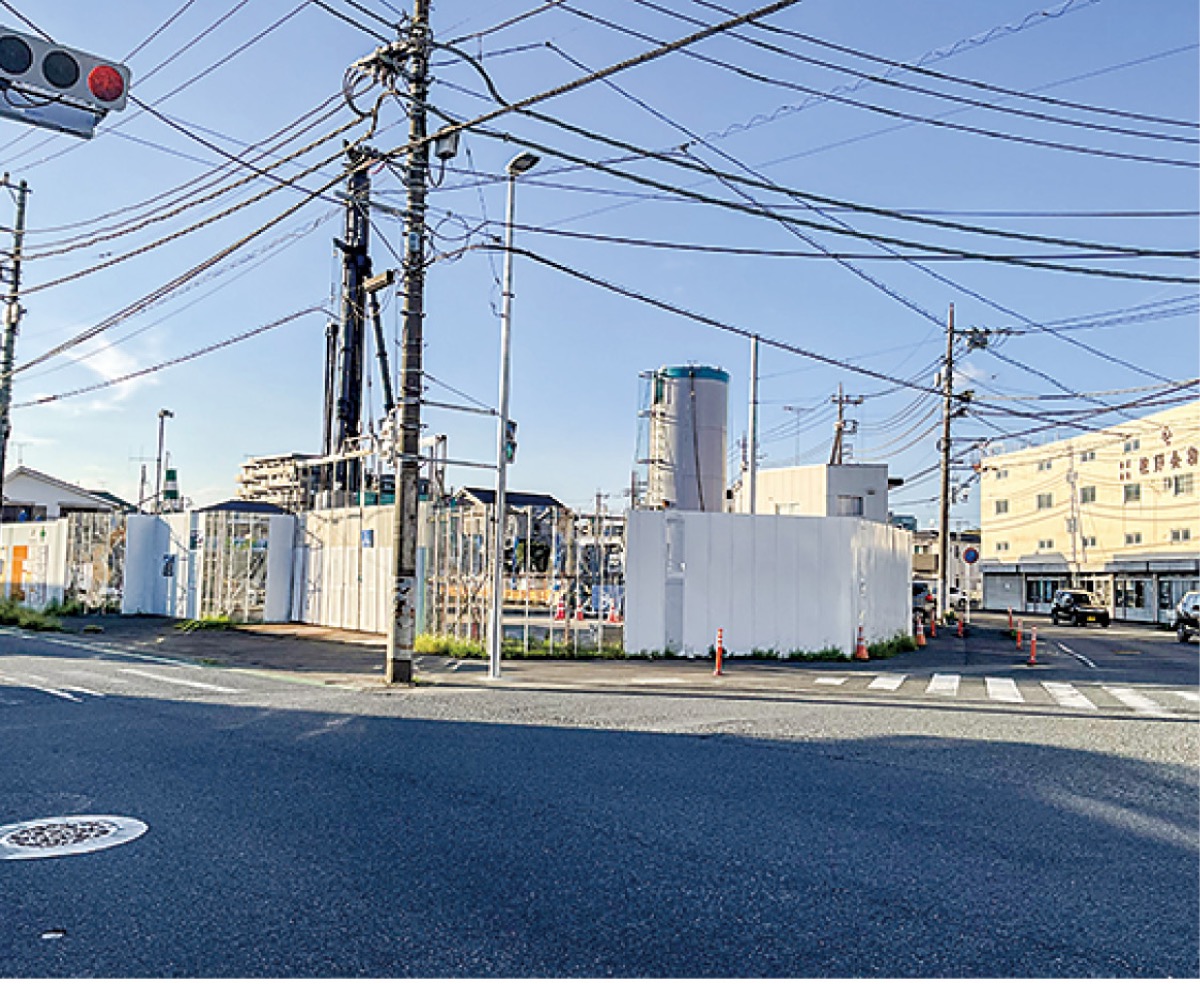 元町交差点の一角で厚木北公民館の工事がこの夏から始まり、地盤改良工事が行われている。