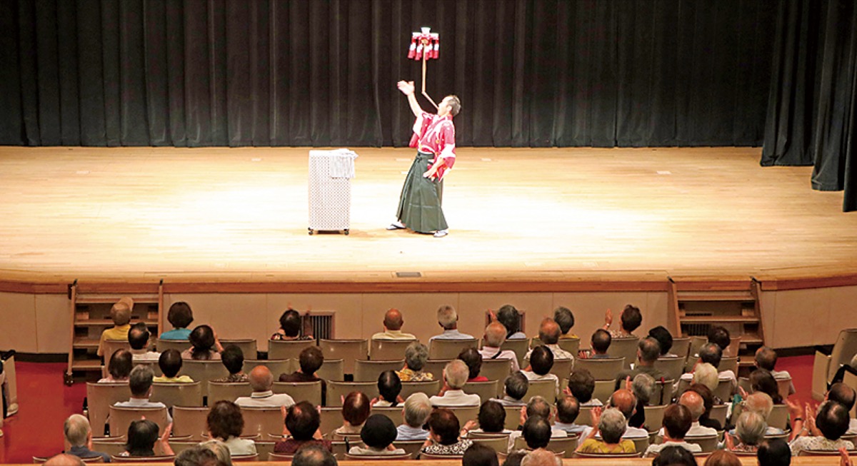またアトラクションでは、太神楽曲芸・豊来家大治朗さんと演芸家の江戸家猫八さんが登場。豊来家さんは、剣の輪くぐりや五階茶碗など多彩な曲芸を披露。来場者も傘回しに挑戦し大きな拍手が送られた。江戸家さんは、伝統の犬や猫のほかにサイやカバなど珍しい動物の鳴き声を交えながらのユーモアたっぷりの語りを披露し、会場は笑いの渦に包まれた。