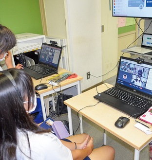 初の授業に参加したのは、フィリピンから来日した2年生と3年生の女子生徒。この日は植物に関する授業で、2人は現地の生徒による研究発表を聞いた。「最初は全体の流れが掴めなかったが、現地の先生が詳細に解説をしてくれたので良かった。楽しく参加できた」と2人は話した。高山校長は「始まったばかりなので今後、現地の学校とミーティングを重ね、良い学びになるようにしていきたい」と話した。