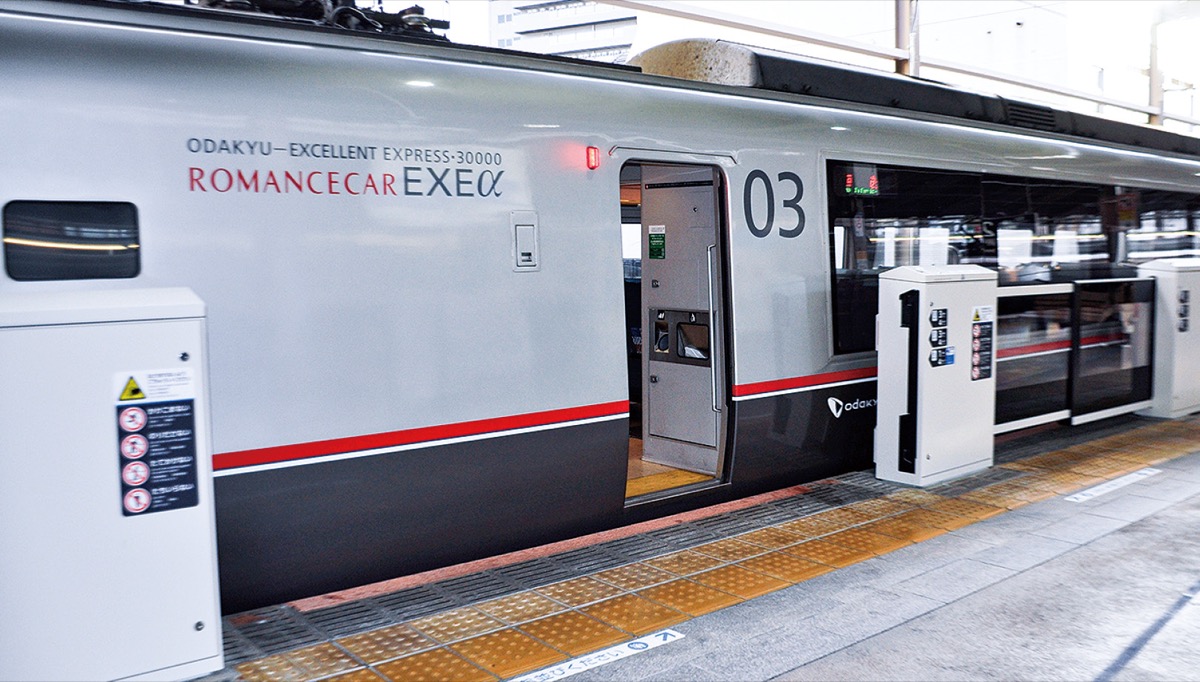 本厚木駅に設置されたのは、小田急線では初となる特急ロマンスカーのドア位置に対応した「大開口ホームドア」。開口部分を最大限に広げることで、通勤車両と特急車両の扉位置の違いという課題を解消した。