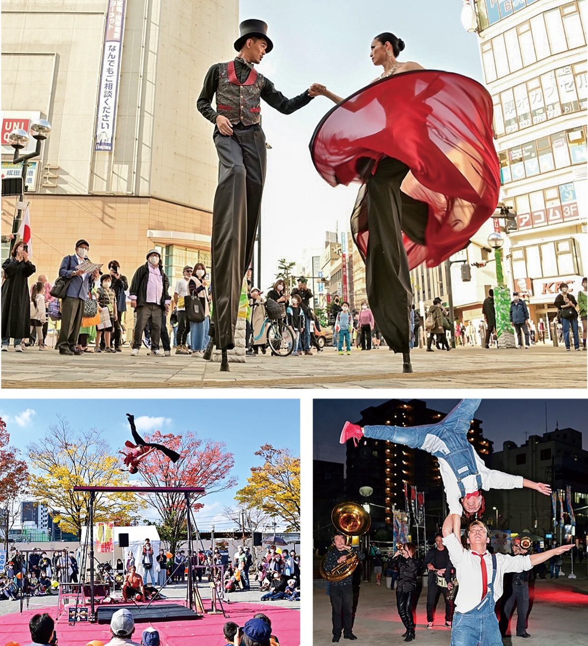 本厚木駅周辺で11月11日(土)・12日(日)、にぎわい爆発あつぎ国際大道芸が開催される。米国や中国など海外からも演者が参加し、11カ所の街角で息をのむステージを繰り広げる。