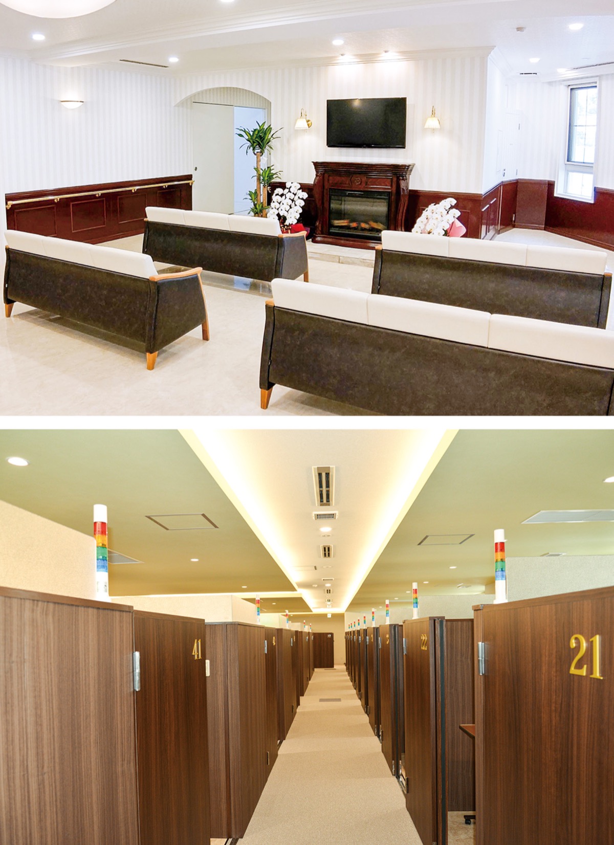 透析の日はまずエレベーターで2階に上がり、顔認証で受付を済ませてから体重を計り、指定された個室へ移動。個室はベッドタイプまたはチェアタイプから選択可能。田中理事長は「他の患者さんの視線を気にすることなく、透析を受けられます。現在、新型コロナやインフルエンザの感染拡大が継続していますが、個室対応しているので、心配なく通院いただけます」と話す。